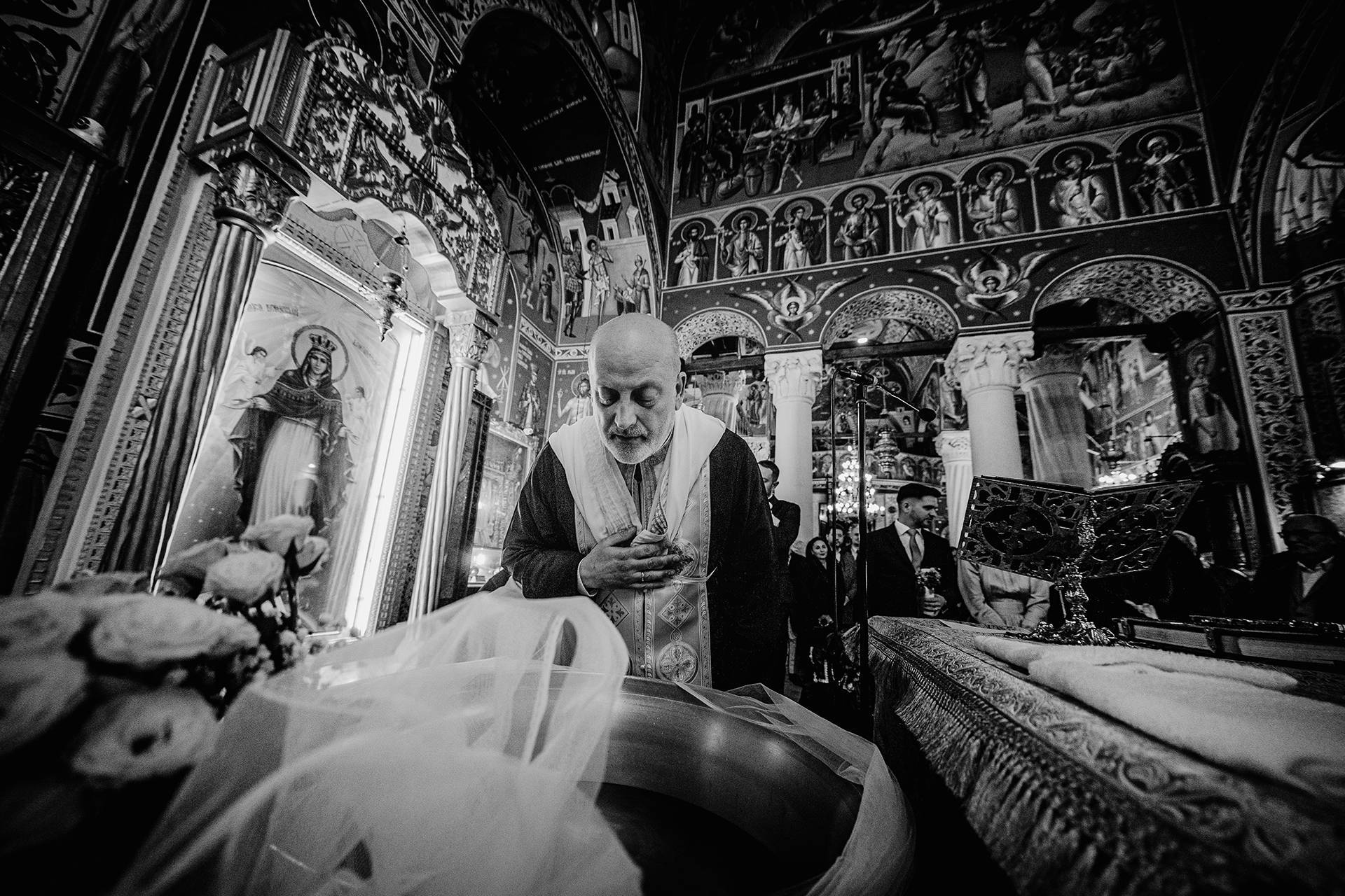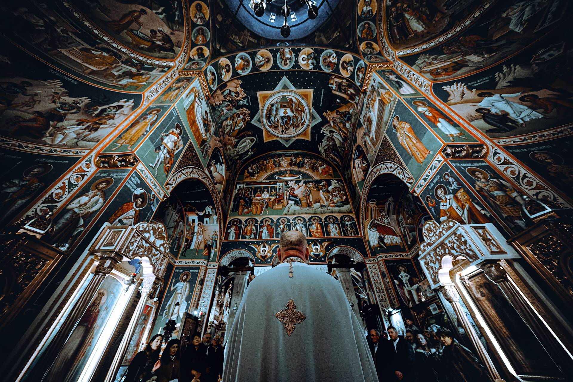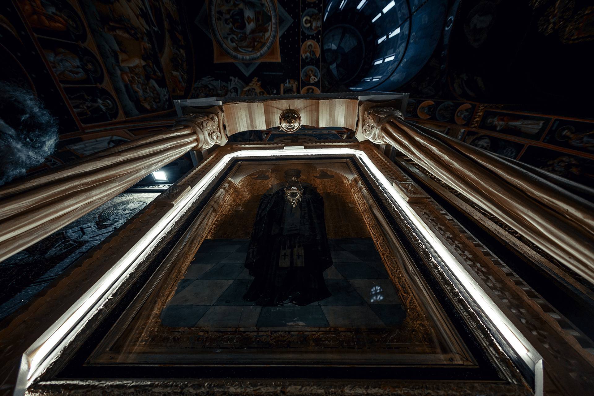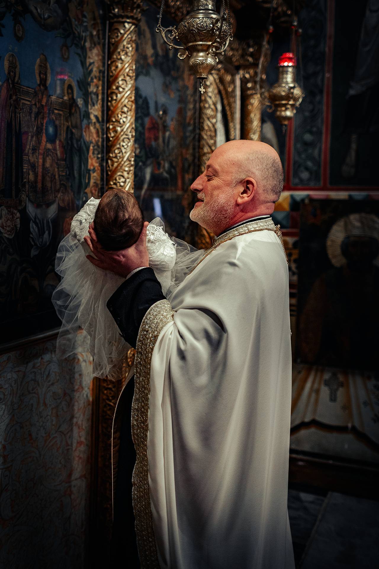 Ceremonia religioasă a avut loc la Biserica Sfântul Gheorghe Nou, chiar la kilometrul zero al orașului. Un loc cu o încărcătură aparte, unde istoria și liniștea se simt în fiecare colț. Icoanele vechi și prezența moaștelor Sfântului Nicolae dau bisericii o atmosferă profundă, greu de descris în cuvinte. Acolo am surprins și una dintre fotografiile mele preferate – un cadru inedit, cu un chip misterios ce se oglindește într-una dintre icoane. Fotografia este mai jos, în galerie.