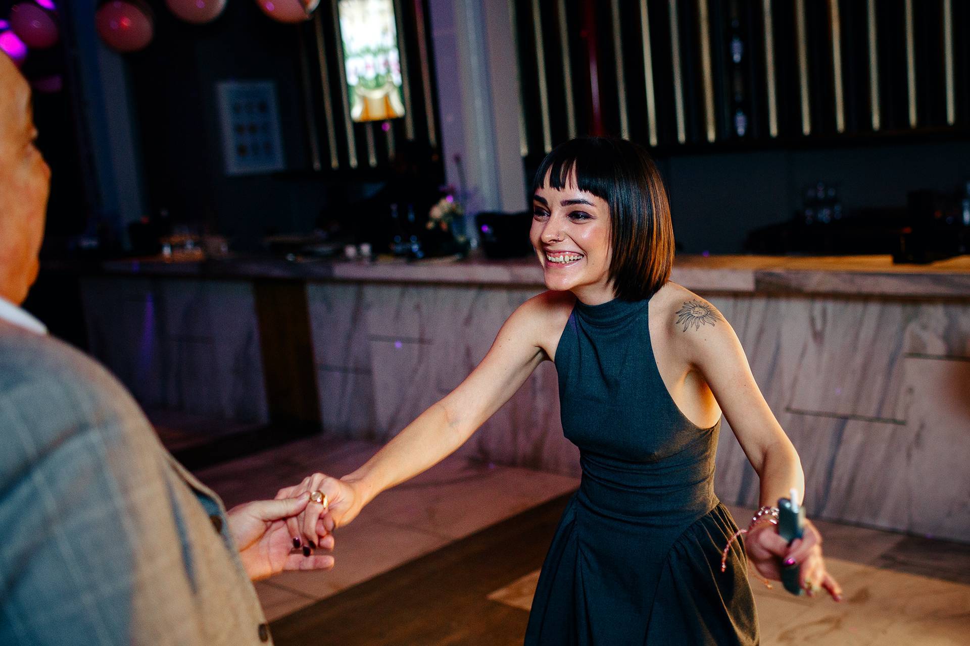 După ceremonie, am continuat la Linea / Closer to the Moon, un local de evenimente ce nu are nevoie de prea multe prezentări. Situat în centrul Bucureștiului, cu un design elegant și o terasă care oferă o perspectivă panoramică asupra orașului, a fost cadrul perfect pentru o petrecere memorabilă.