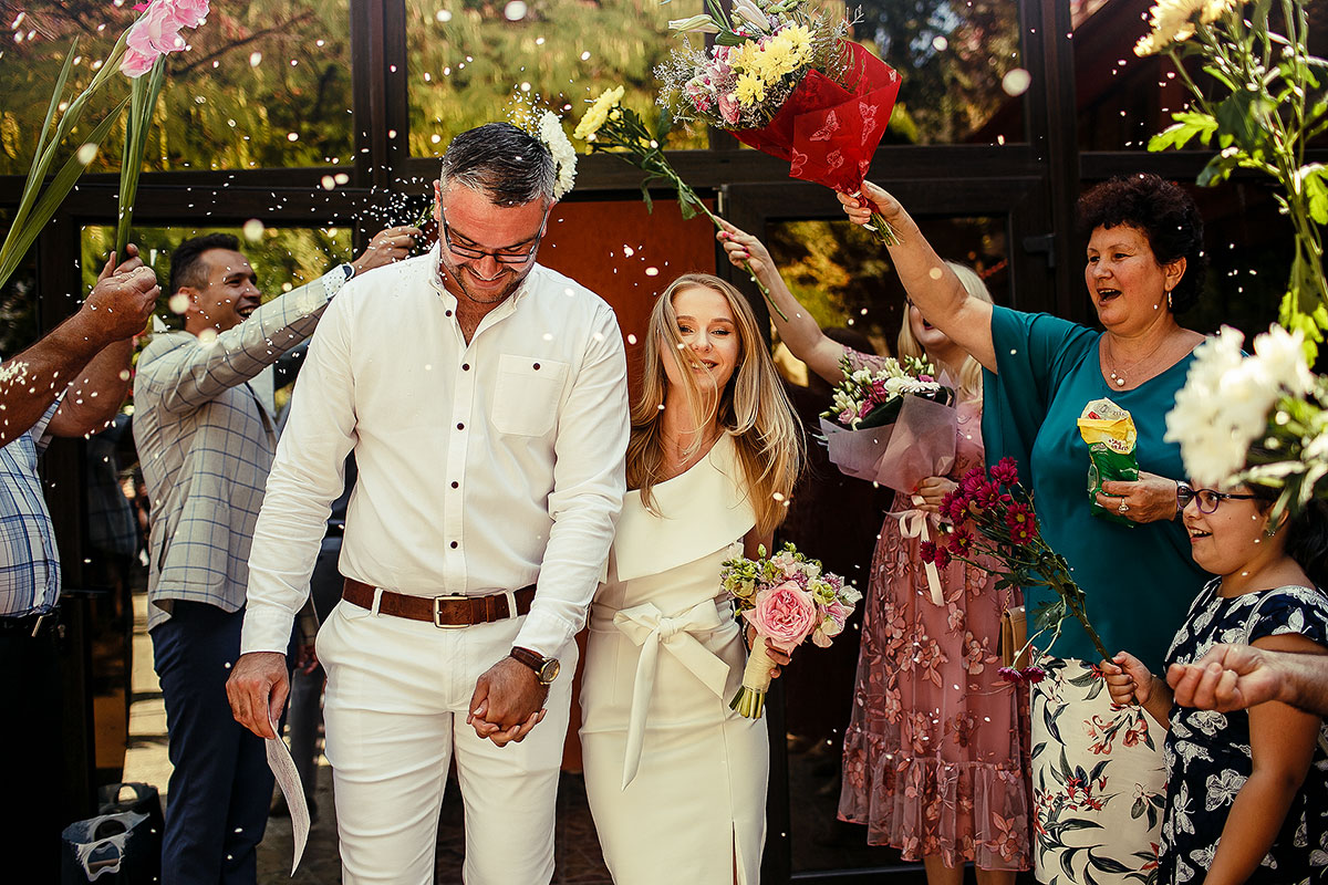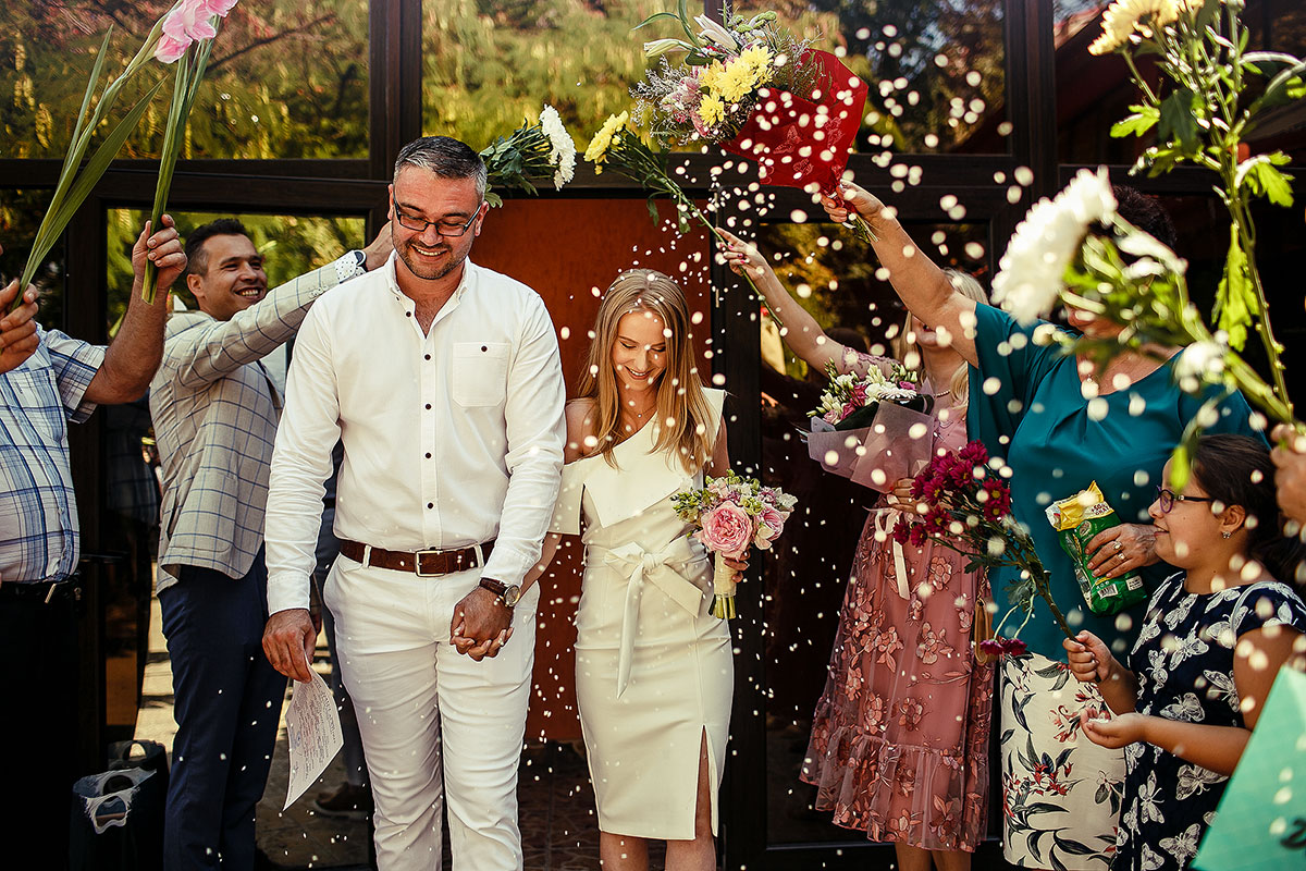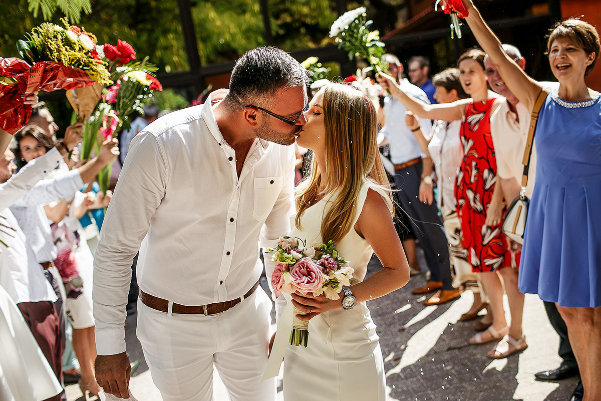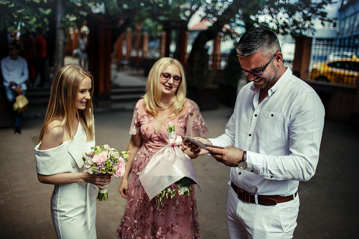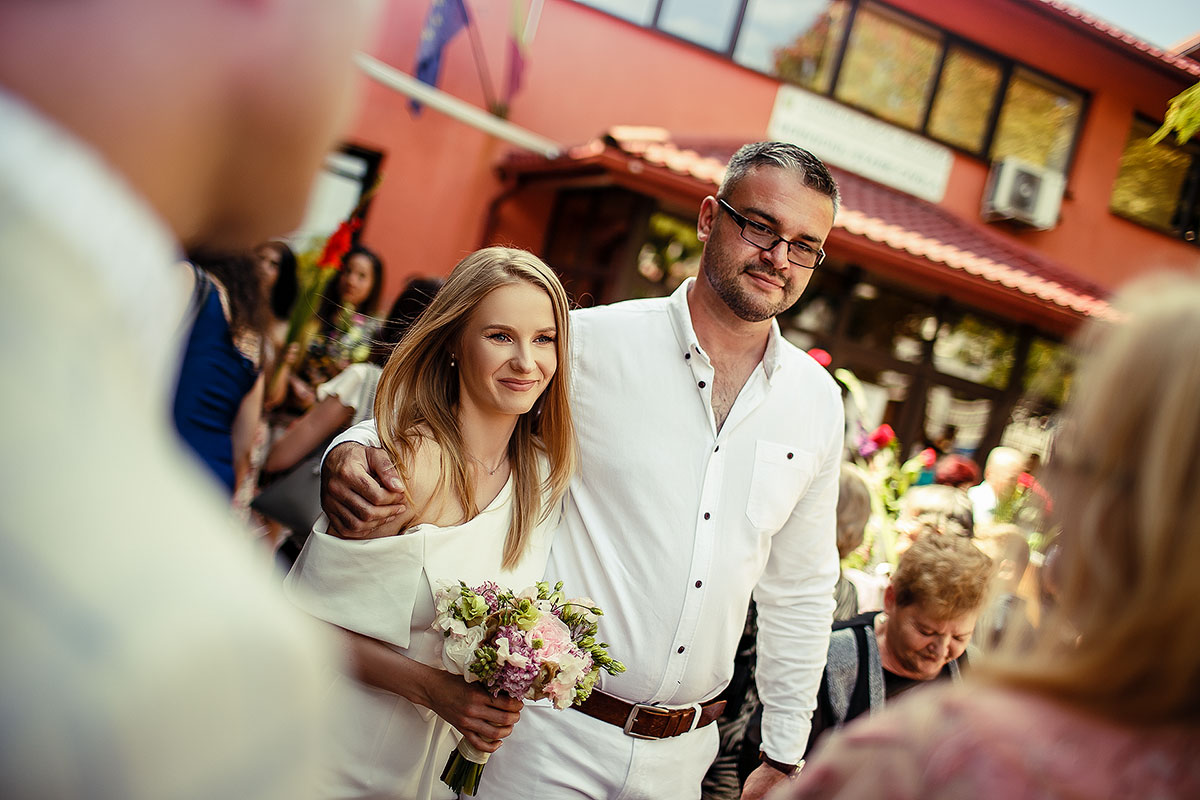 Acum a venit momentul fotografiilor de cununie civilă. Îmbrăcați impecabil în alb, cu sufletele curate și zâmbetul pe buze, cei doi au încântat pe toată lumea. Un pas important în unirea a două destine, pe care l-au făcut cu eleganță și strălucire.